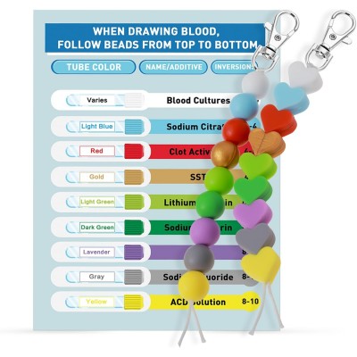 2 Stück Reihenfolge der Blutentnahmeperlen mit Referenzkarte, Phlebotomie-Essentials-Hilfsmittel für